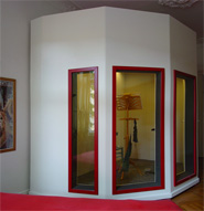 The soundproofing for modules 950 and 1200 is optimized for the frequency range of speech and "ordinary" acoustic instruments. The booths are available with two types of room acoustics, and various delivery versions.