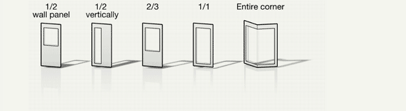 The positions of doors and glass areas are freely selectable (and following consultation can also be located in the rear walls of the booth).