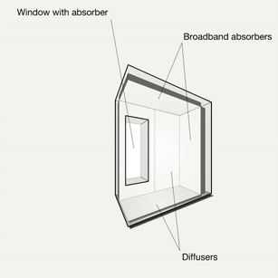 Rehearsal, recording and control rooms can be realized in almost any desired form, e.g. with an extremely dry sound for speech and sound recordings, or with a spatially diffuse sound to facilitate prolonged practising without fatigue. Combinations and variable elements are also possible.